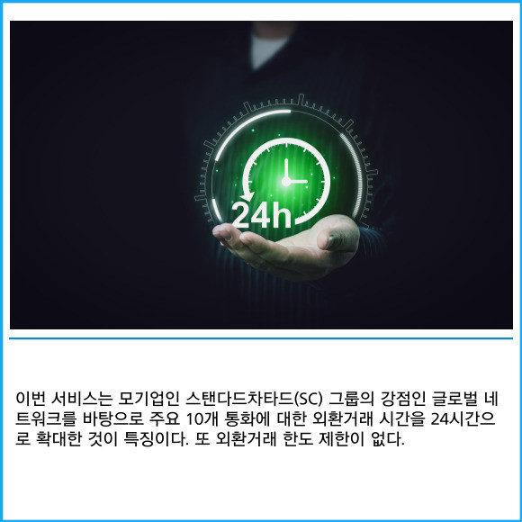 [프라임경제] SC제일은행이 모바일뱅킹 애플리케이션(앱)에 '365일 24시간 실시간 외환거래 서비스'를 선보였다고 20일 밝혔다.