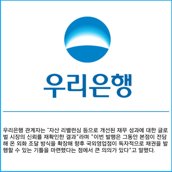 [카드] 우리은행, 6억달러 규모 외화 선순위채권 발행