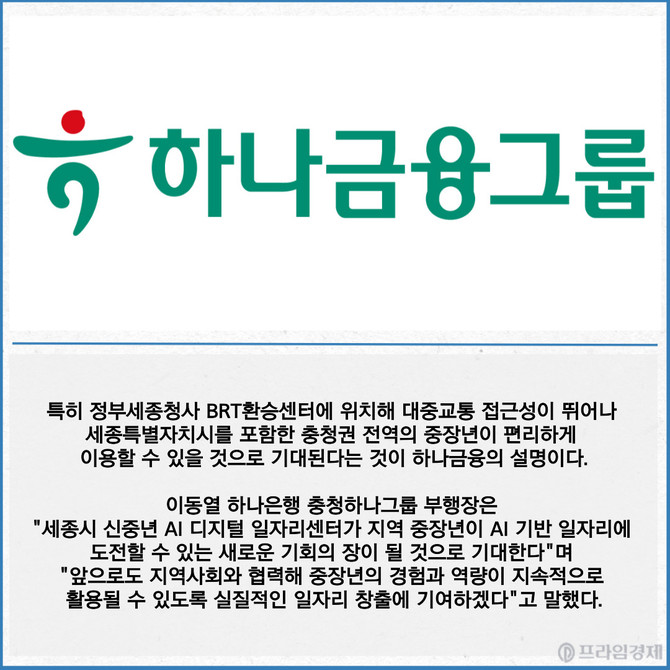 [카드] 하나금융·세종시 '신중년 AI 디지털 일자리센터' 구축