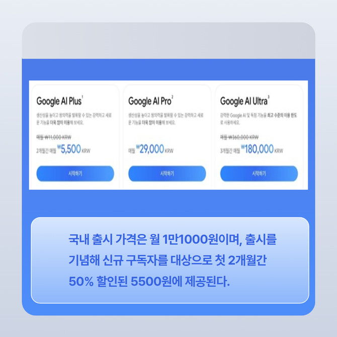 [카드] 구글, 월 1만1000원 저가 AI요금제 출시
