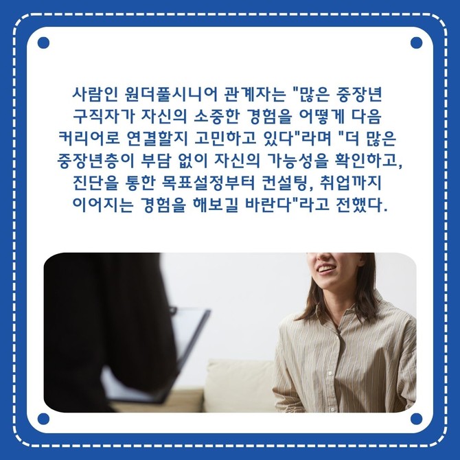 이직·창업 준비 중장년층 대상…진단 통한 목표설정·컨설팅·취업 목표