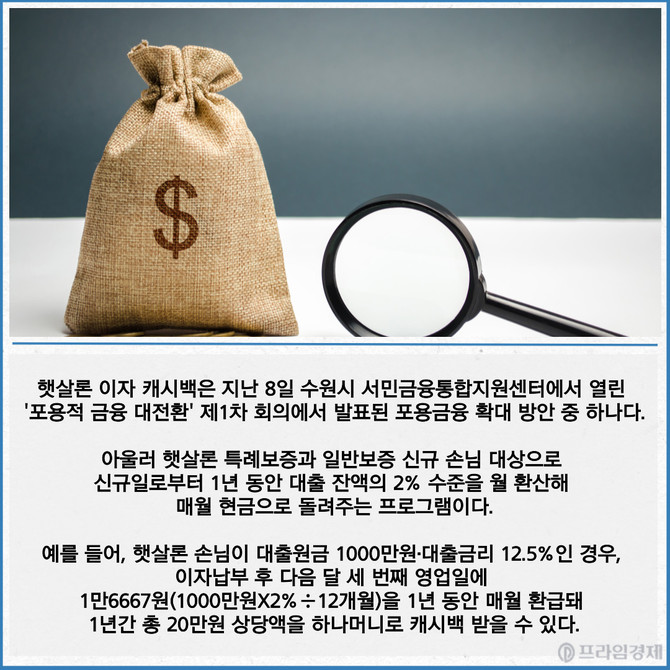 햇살론 신규 고객 대상…대출 잔액 2% 매월 캐시백