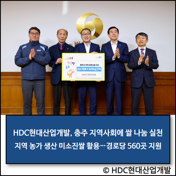 HDC현대산업개발(294870, 이하 HDC현산)은 29일 충북 충주시 관내에 거주하는 어르신들의 생활 지원을 위해 대한노인회 충주시지회에 쌀을 전달했다고 밝혔다.