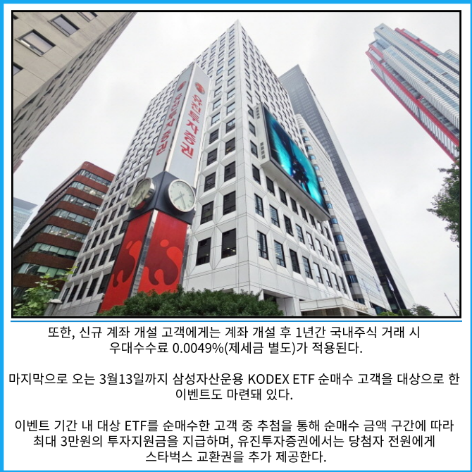 [프라임경제] 유진투자증권은 코스피 5,000 달성을 기념해 국내주식 투자 활성화를 위한 '국내주식 페스티벌'을 진행한다고 2일 밝혔다.