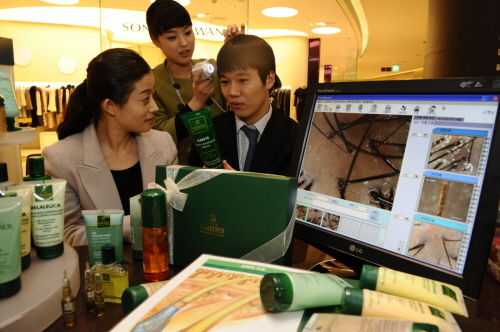 불황에 따른 스트레스 증가로 탈모예방에 도움이 되는 샴푸세트가 발렌타인 선물로 인기를 끌 전망이다. 선물세트는 7만원3천부터 10만원까지 다양하고, 매장을 직접 방문하면 두피와 모발상태를 체크해주는 스캔서비스도 함께 제공한다.