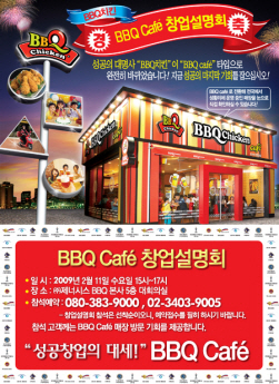 새로운 형태의 BBQ 카페 가맹희망자들을 위한 이번 창업설명회는 서울 문정동 본사에서 2월 11일 수요일 오후 3시에 열린다. 기존 BBQ 가맹점 사장은 물론 ‘BBQ 카페’ 운영을 희망하는 사람이라면 누구든 참석 가능하다.