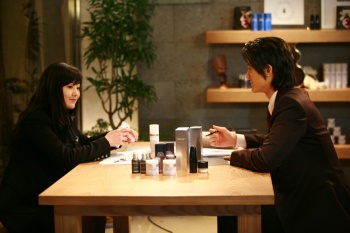 | ▲ 가수 KCM '멀리있기'뮤직비디오의 한장면 (사진왼쪽 랩스토리코리아 박정아대표와 우측 텔런트 이기우)뮤직비디오에 등장한 랩스토리와 박정아 대표이사 사진제공=스타가이드 | ||