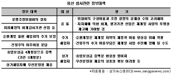 상가 세입자에게 조합 분양분을 제외한 상가의 우선분양권을 제공하는 대책 또한 실효성 여부에 의문이 제기된다.