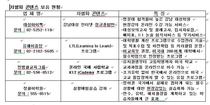 하지만 이러한 불경기에도 오히려 매출이 늘고 회원수가 증가하는 교육업체들이 있다. 바로 경쟁사들이 따라오지 못하는 차별화된 콘텐츠와 특화된 서비스가 강점인 기업들. 이들 업체가 지닌 차별화된 경쟁력은 불황기를 이겨내며 승승장구하는 원동력이 되고 있다.