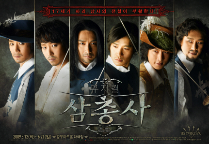 활기차고 정이 많은 ‘포르토스’ 역에는 ‘노트르담 드 파리’와 ‘클레오파트라’의 김법래, 젊고 유능하며 잘생긴 ‘아라미스’ 역은 민영기가 맡았다.