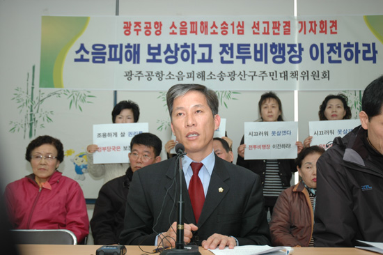 | ▲광주시 광산구 주민대책위원회(위원장 국강현 광산구 의원)는 18일 전투기 소음 피해소송 1심 판결 직후 기자회견을 개최하고 주민들의 입장을 밝혔다. |