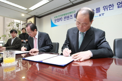 | <KT는 18일 문화체육관광부 산하 한국문화정보센터와 IPTV기반의 공공문화정보서비스 제공을 위한 업무협약(MOU)을 체결하고, 19일부터 전국의 문화PD들이 제작한 문화정보콘텐츠를 메가TV를 통해 방영한다고 밝혔다.> | ||