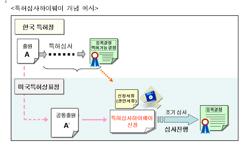 특허심사하이웨이(PPH) 제도는 2개 이상의 국가에 중복출원된 발명의 경우 먼저 출원된 국가로부터 ‘특허가능’하다는 평가를 받으면, 나중에 출원한 국가에서 이를 활용하여 신속히 심사를 수행하는 것을 말한다.