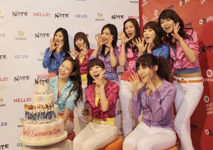 [프라임경제]싸이월드 디지털 뮤직 어워드에서 1월의 ‘송 오브 더 먼스(이달의 노래)’로 선정된 소녀시대가 감사 인사를 하고 있다.