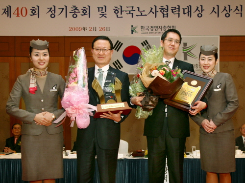 [프라임경제] 아시아나항공이 26일 서울시 중구 소공동 조선호텔에서 열린 한국경영자총협회 주관 2009 한국노사협력대상 시상식에서 대기업 부문 (민간기업) '대상'을 수상했다.