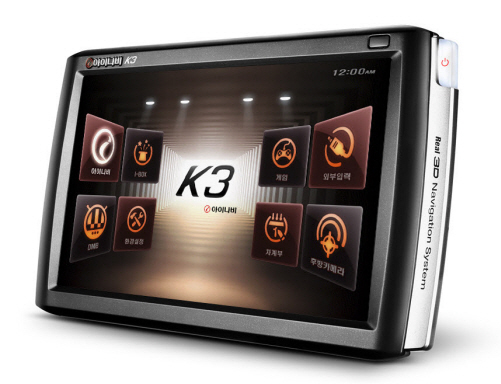 ‘아이나비 K3’는 8GB SDHC 메모리카드를 기본으로 DMB, 오디오, 비디오, 노래방, 게임, 차계부 등 다양한 멀티미디어 기능이 제공된다. 또한 DMB자동채널검색 기능 추가로 고객들은 권역별 이동시 편리하게 DMB 시청이 가능하다. 내장된 재부팅 방지용 배터리(900mAh)와 후방감시카메라 자동 인식 기능은 편리성을 더한다.