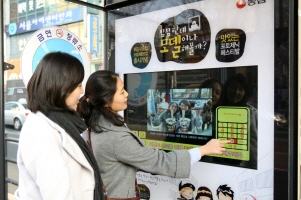 ‘쌍방향 LCD포토존’은 스티커 사진기와 같은 컨셉으로, ‘튀김우동컵’과 ‘모듬해물탕컵’의 제품 이미지가 LCD 전면에 노출되어 있어, LCD를 통해 라면 먹는 포즈의 사진을 손쉽게 찍을 수 있다. 참여를 원하는 시민들은 버스를 기다리는 동안 재미있게 라면 먹는 사진을 찍고 전화번호를 입력하면 페스티벌에 쉽게 참여할 수 있다.