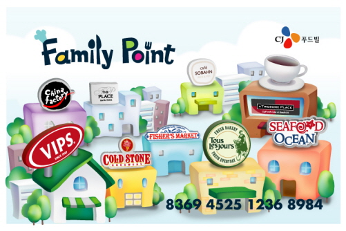 우선 통합멤버십 서비스가 도입되면, ‘패밀리포인트(Family Point)’ 카드 1장으로 CJ푸드빌 9개 브랜드 1300여 전 매장에서 포인트 적립과 사용이 가능해져 고객 혜택의 폭이 크게 확대 될 전망이다.