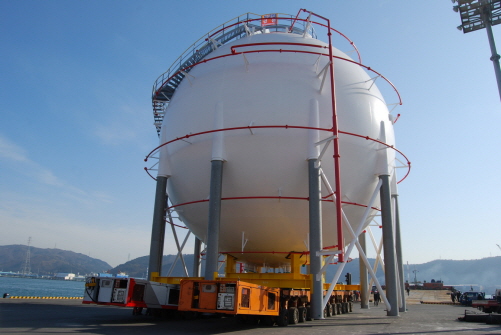[프라임경제] 대한통운이 국내 최초로 대형 부탄가스 저장용 구형 탱크를 운송하는데 성공했다.