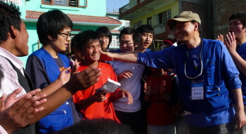 | 사진 = 김동흔(오른쪽) 국립중앙청소년수련원 이사장과 나마스떼해외청소년자원봉사캠프단 일행은 네팔 현지의 고카르나고아원을 방문하여 학용품을 선물했다. |