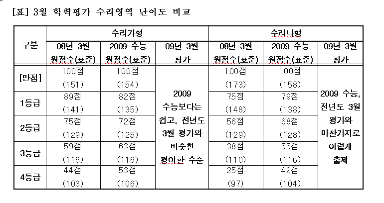 지난 2009 수능 이후 수리 영역은 대체로 어렵게 출제되는 경향이다. 다만, 이번 3월 학력평가는 시험 범위가 제한된 관계로 시험 범위가 본격적으로 확장되는 6월 평가원 모의평가 결과를 보아야만 올해 출제 경향과 난이도를 보다 정확하게 예측할 수 있을 것이다.
