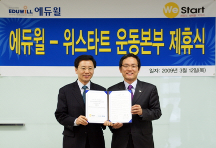 www.eduwill.net)은 위스타트 운동본부(대표 김석산, http://westart.joins.com)와 협약을 맺고, 저소득 아동 및 가족 지원사업을 후원하기로 했다고 13일 밝혔다.