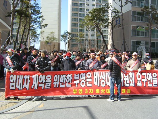 대책위 관계자는 “(주)부영이 임대주택법을 악용한 편법분양계약으로 엄청난 건설폭리를 취하고도 분양가에 맞지 않는 수준이하의 임대아파트를 시공하더니 폭리를 취하려한다”고 말했다.