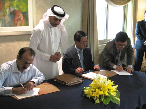 | ▲ 현대건설의 기술력과 공사수행능력은 해외에서 더 인정받고 있다. 2월 28일(사우디 현지시간 기준) 사우디 국영 석유회사 본사에서 진행된 ‘카란 가스개발공사’ 계약식에서 현대건설 안승규 플랜트사업본부장(사진 중앙)이 계약서에 서명하고 있다. (사진 현대건설) | ||