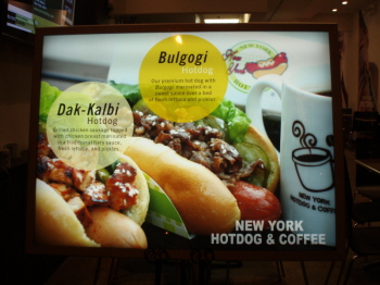 미국의 대표적인 쇼핑거리 맨하탄 SOHO에 위치한 ‘뉴욕핫도그&커피’(이하 뉴욕핫도그, 대표 최미경) 뉴욕 5호점은 ‘불고기핫도그’, ‘닭가슴살번’ 등을 우리말 그대로 된 메뉴판을 걸고 미국인들에게 ‘한국의 불고기’를 알리는 첨병 역할을 하고 있다.