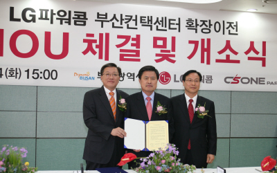 이날 체결식에 맞춰 LG파워콤은 단일 업체로는 부산 최대인 1000석 규모의 컨택센터 개소식을 갖고 본격적인 고객서비스 업무에 들어갔다.