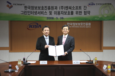 | <한국정보보호진흥원은 3월 26일 엔씨소프트와 그린 인터넷서비스 및 이용자 보호에 관한 협약을 체결하였다.> | ||