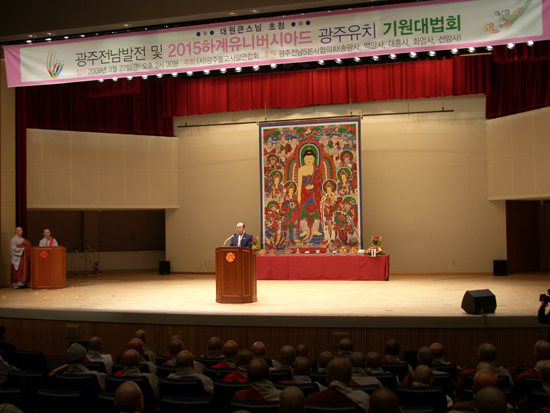 박광태 광주시장은 “2013년 유치는 노력했으나 실패했다”고 회고하며 “부처님의 자비광명이 있을때 유치될 것으로 확신한다. 기도해 달라”고 말했다.