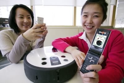 ‘영상통화 로봇청소기’는 로봇청소기에 영상통화 기능을 갖춘 것으로 SHOW휴대폰만 있으면 언제 어디서든지 원격으로 로봇청소기를 조정할 수 있다. 영상통화가 되는 휴대폰이면 모두 가능하며 로봇청소기로 영상전화를 건 후 화면을 보며 휴대폰 버튼을 이용하여 청소기를 전후 좌우로 조정할 수 있다. 동작 정지나 충전, 전체자동청소 등도 가능하다.