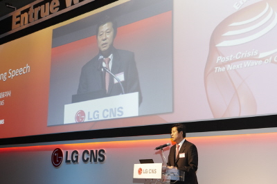 | <LG CNS는 8일 서울 강남구 삼성동 그랜드 인터컨티넨탈 호텔에서 주요 업계 및 학계 관계자 등 1,500여명이 참석한 가운데 경영 혁신 및 IT 콘퍼런스인 ‘엔트루월드 2009’를 개최했다.> | ||