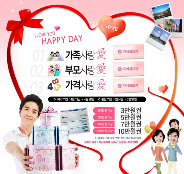 가족사랑 이벤트는 5월 4일부터 31일 기간 내에 출발하는 해외여행 상품을 오는 4월 26일까지 예약하는 고객에 한해 진행된다.(www.hyundaidreamtour.com)