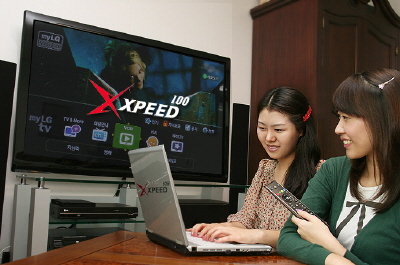 | <LG파워콤이 최고속도 100Mbps급 초고속인터넷 상품인 ‘엑스피드(XPEED)100’을 출시하며 주택지역 초고속인터넷 속도 경쟁에 불을 붙이고 있다.> | ||