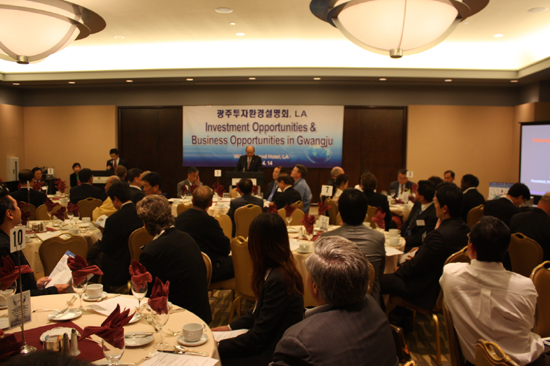 | ▲광주시는 14일 낮12시부터(현지시간) LA 윌셔 그랜드 호텔에서 LA지역 LED관련업체 및 관계자들이 참석한 가운데 성황리에 광주시투자환경설명회를 열었다. |