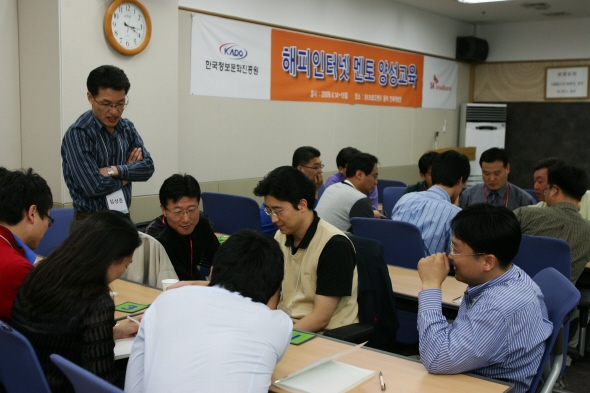 | <SK브로드밴드는 4월부터 한국정보문화진흥원과 협력해 청소년들의 인터넷중독 해소를 위한 ‘해피인터넷’ 활동을 시작한다. 14일과 15일 양일간 SK브로드밴드 동작정보센터에서 실시한 ‘해피인터넷 멘토 양성교육’에서 자발적으로 참석한 35명의 임직원들이 본 활동에 앞서 교육을 받고 있다.> | ||