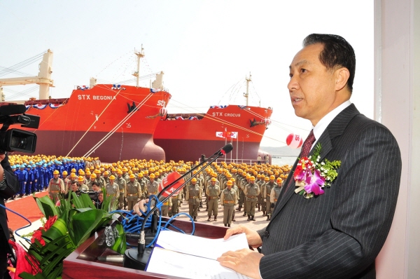 STX그룹은 17일 STX 다롄 조선기지에서 장청인(張成寅) 랴오닝성위원회 상무위원, 리완차이(李万才) 랴오닝성 부성장, 샤더런(夏德仁) 다롄시장 등 중국 현지 고위 인사와 강덕수 STX그룹 회장, 선주사 및 선급 관계자 등이 참석한 가운데 ‘STX BEGONIA호, STX CROCUS호 명명행사’를 가졌다.