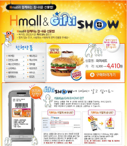 현대홈쇼핑의 온라인쇼핑몰 H몰(www.hmall.com)은 지난 4월 3일부터 버거킹, 던킨도너츠 등 기프티쇼를 최대 30%까지 할인해 판매하는 행사를 열어 매일 평균 4천 개씩 판매하고 있으며 특히 지난 주말(4월 17~19일)에는 하루에 8천 개 이상 팔려나가는 등 폭발적인 반응을 얻고 있다. 현재까지 고객 한 명이 2개 이상 구매한 비율도 40%에 달했다. 가장 많이 팔린 기프티쇼는 버거킹 와퍼세트(6,300원), 베스킨라빈스 파인트 아이스크림(6,300원), 던킨도너츠 도넛교환권(6천원) 순으로 가격에 큰 부담을 느끼지 않는 간식 거리가 많았다.