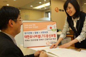 대한생명의 ‘대한유니버셜LTC종신보험’은 종신, 장기간병, 민영의료보험의 장점을 모두 모았다. 재해나 질병으로 인한 사망은 물론 치매나 장해 등으로 일상생활이 힘들 때 매년 간병자금을 지급받을 수 있는 게 특징이다.