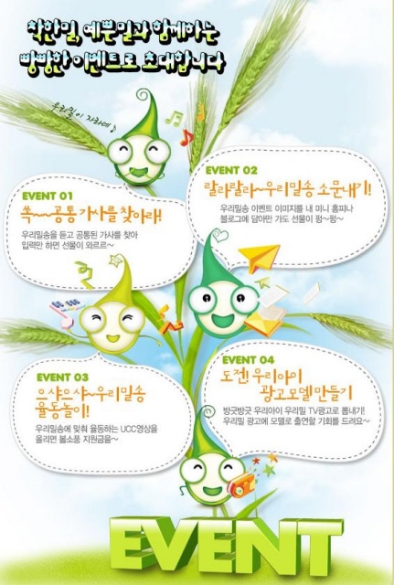 www.우리밀사랑.com)’ 홈페이지에서 다양한 이벤트를 진행한다. 우리밀송은 우리밀 사랑 공익 캠페인의 일환으로 아이들이 우리밀과 좀더 쉽게 친해질 수 있도록 하기 위해 기획되었다.