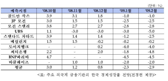 즉, 내년도 우리나라 경제 전망치를 연말까지 우리경제나 세계경제 모두 침체국면에서 회복하기는 어려울 것이라는 전망이 다소 우세한 상황이다.