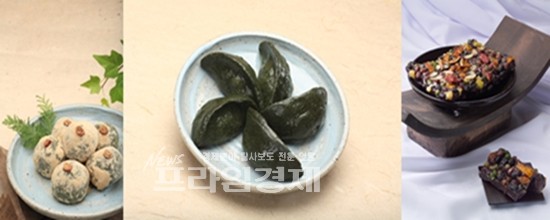 | 미국 수출길에 오른 광주 떡 사진 왼쪽부터 두텁떡, 모싯잎송편, 흑미영양떡 |