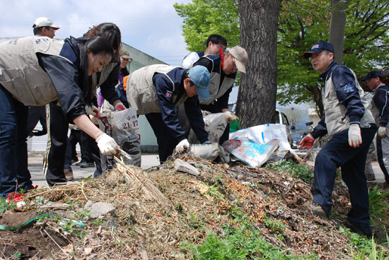 | ▲농협전남본부는 21일 장성군 황룡면 일산동 마을에서 나무심기, 마을주변 폐비닐과 쓰레기 수거, 하우스 비닐제거 등 농촌일손 돕기에 나섰다. |
