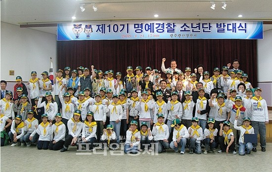 광산경찰은 21일 경찰서 4층 대회의실에서 배용주 서장, 한국 청소년육성회장, 협력 단체장, 지도교사, 명예경찰소년단원 등 130여명이 참석한 가운데 제10기 명예경찰 소년단 발대식을 개최했다.