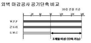 외벽마감 신공법인 SWC(Safety Working Cage) 공법은 외벽마감공사에 필수적인 가설작업대와 안전가시설을 일체화한 ‘안전가설작업틀’로서 전체 공사비와 공사기간을 획기적으로 줄여줄 뿐 아니라 소음 분진 등에 따른 민원발생, 안전사고, 하자 보수 등 공사현장의 고질적인 문제점들을 근본적으로 해결해 준다.