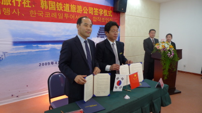 | <사진 좌. 코레일투어서비스 김웅 사장 /사진 우. 청도철로국제여행사 런하오 사장.> | ||