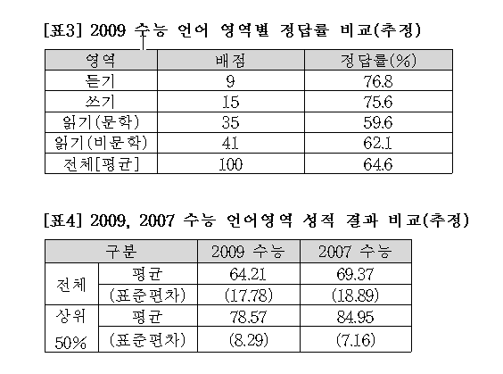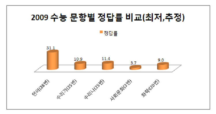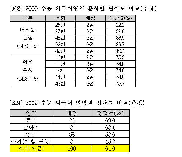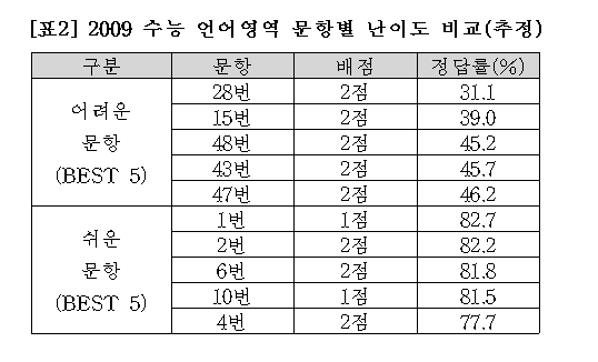 앞으로 2010 수능 시험에 대비하는 수험생들은 이번 난이도 분석을 통해 나타난 정답률을 보고 고난이도 문제의 출제 유형을 익혀서 고득점을 받을 수 있도록 한다.