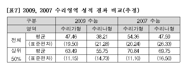 2009 수능 수리 영역의 난이도는 앞에서 분석한 대로 수리가형, 나형 모두 전반적으로 작년보다 어렵게 출제되었다.